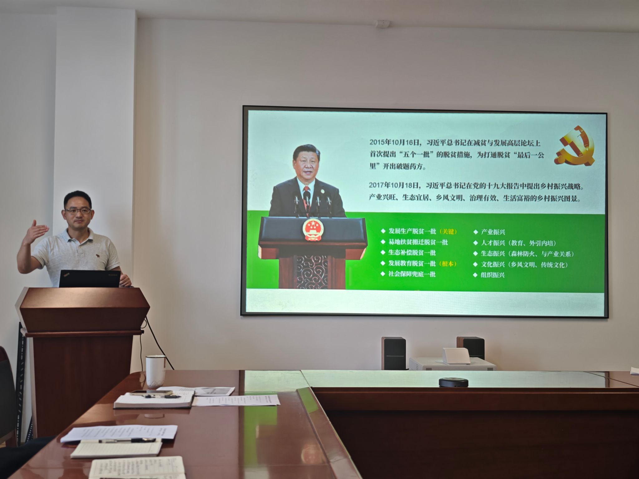 随后,施雪钢部长以《在脱贫攻坚中提升党性修养,践行南农精神》为题讲授主题党课。他结合脱贫攻坚中的生动案例和感人故事,深入阐述了脱贫攻坚精神的丰富内涵,强调全体党员干部要从脱贫攻坚历程中感悟党性力量,传承和践行南京农业大学“诚朴勤仁”的校训精神,将党性修养融入学生工作的方方面面,以扎实的工作作风服务学生成长成才,在平凡的岗位上践行初心使命。